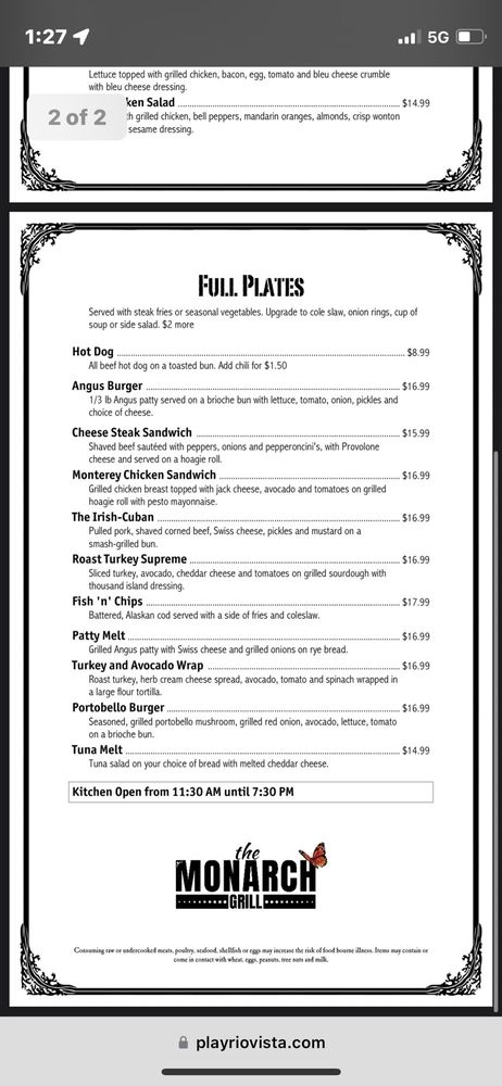 Welcome to The Monarch Grill, a delightful American dining destination nestled in Rio Vista, CA. This establishment prides itself on a diverse menu that showcases delicious interpretations of classic American favorites, perfect for any palate.